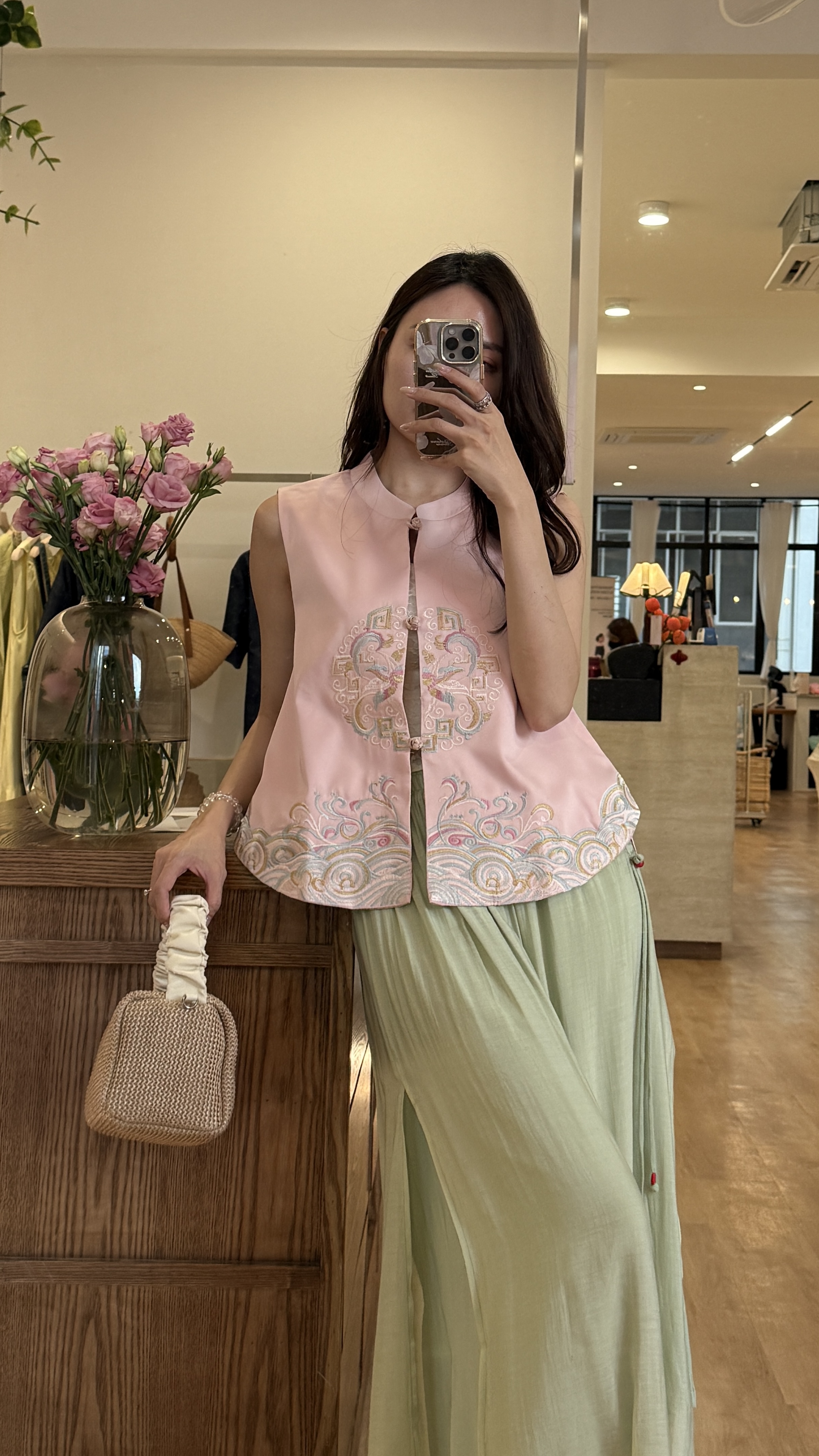 Li Ya Floral Embroided Long Sleeve Oriental Vest