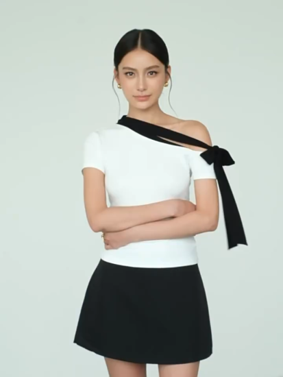 Andrea Ribbon Tie Asymmetric Top
