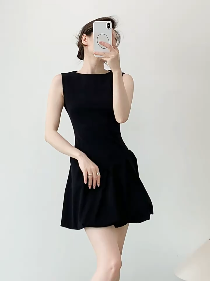 Designed for the modern lady who loves refined style. Featuring a unique and fashionable patchwork design that blends sophistication with a fresh, chic vibe. The figure-flattering silhouette is enhanced by a tailored waist, creating a slim and graceful profile while the tulip-shaped skirt adds a playful yet elegant touch. This dress effortlessly balances femininity and trend.