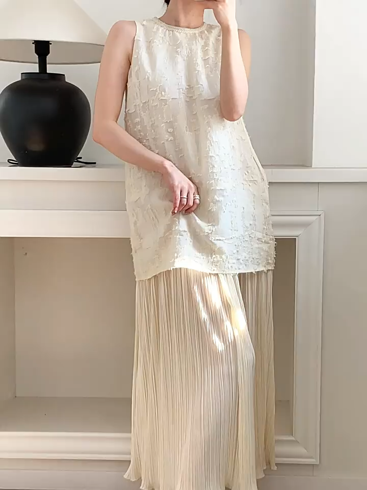This faux two-piece halter neck dress combines playful design with relaxed elegance. The halter neck style beautifully frames the shoulders and neckline while the faux layered look creates depth and a unique two-in-one effect without the fuss of coordinating separates. Designed with a holiday aesthetic in mind, it’s ideal for pairing with sandals and a sunhat for daytime adventures.