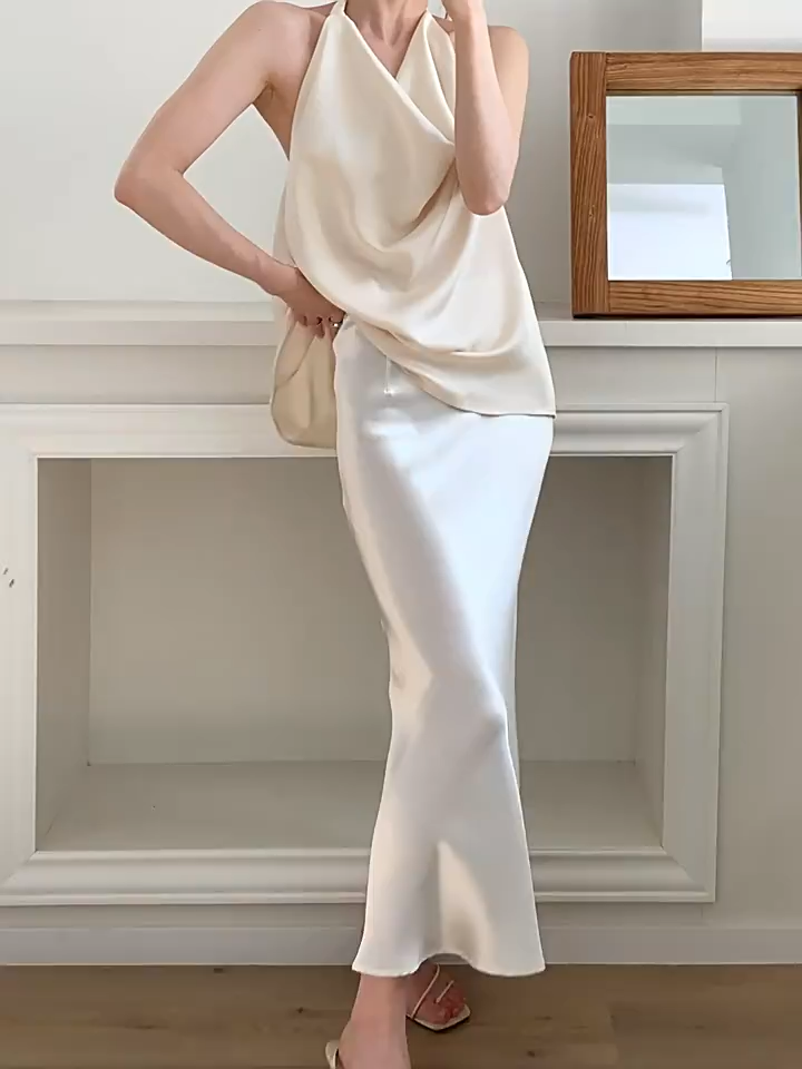 Designed for women who love effortless elegance. Crafted from lightweight fabric, it offers a relaxed fit that drapes beautifully, creating a sense of laid-back sophistication. The open-back design adds a bold and alluring touch while the halter neckline frames your shoulders gracefully. This versatile piece transitions seamlessly from casual daywear to evening outings. This stylish top embodies modern femininity with comfort and charm.
