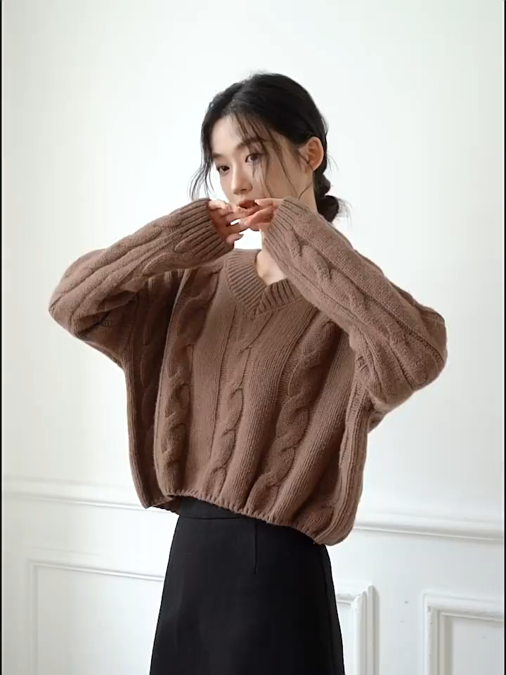 Designed for the lady who loves cozy comfort with a chic, modern touch. Featuring a flattering V-neckline and a unique twisted knit design, this sweater blends timeless elegance with a contemporary edge. Crafted from soft, breathable knit fabric, it offers warmth without sacrificing style. The versatile silhouette flatters all body shapes while the textured knit detail adds depth and sophistication. For women who appreciate stylish knitwear that’s both comfortable and versatile.