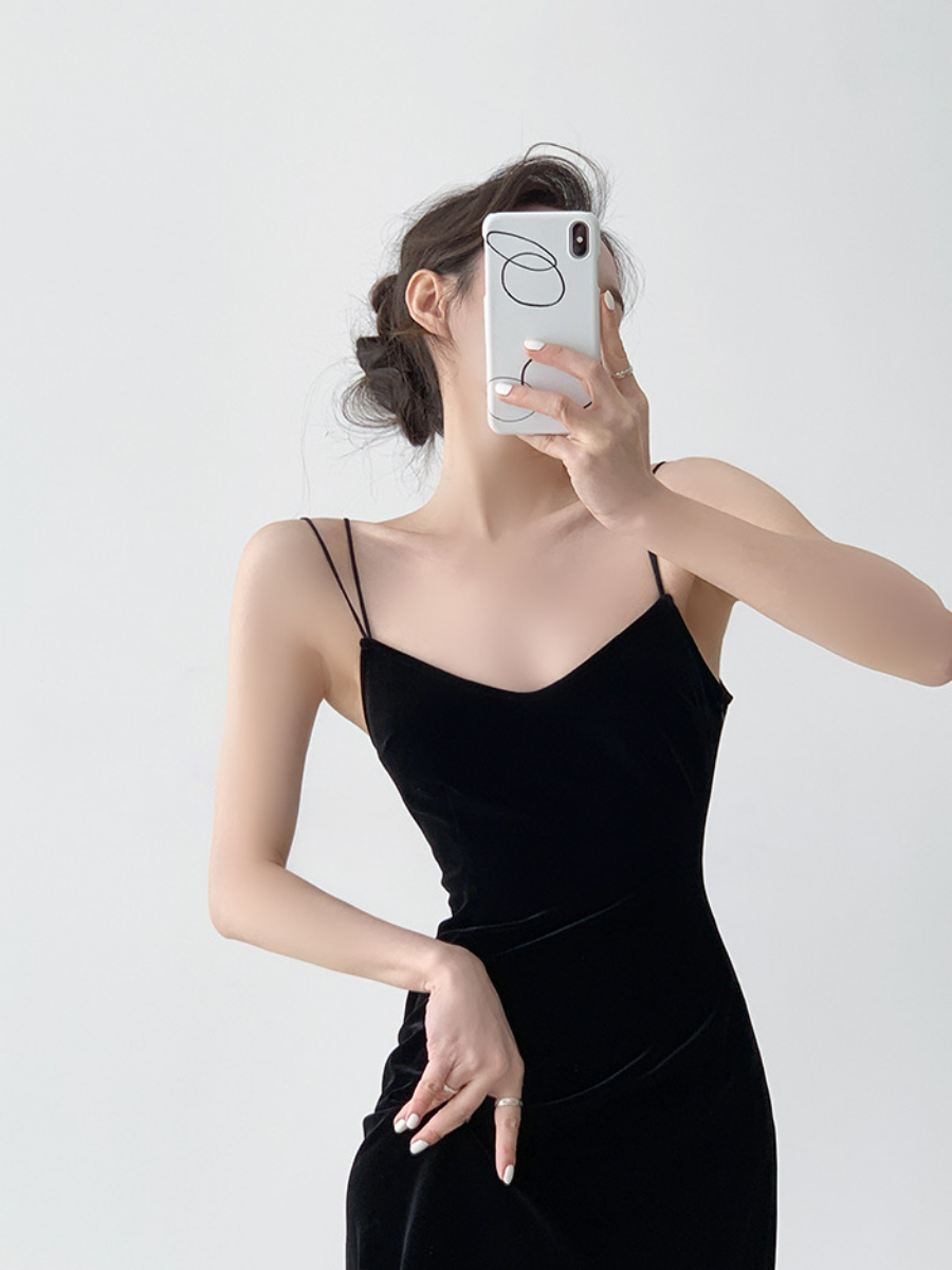 Crafted from luxurious velvet, this form-fitting dress features delicate spaghetti straps and a flattering silhouette that hugs your curves in all the right places. Whether paired with heels and a clutch or layered with a chic jacket, the Nichelle dress brings timeless allure and modern style together.