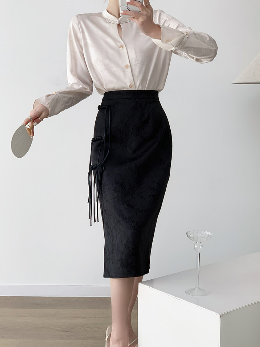 Designed for the modern woman who appreciates oriental elegance, intricate details and graceful femininity. Featuring delicate pankou button accents, a sleek silhouette and a flattering side slit, this skirt blends tradition with contemporary style. Perfect for ladies who love East-meets-West fashion, chic cultural elements and subtle sensuality, it offers both versatility and charm.