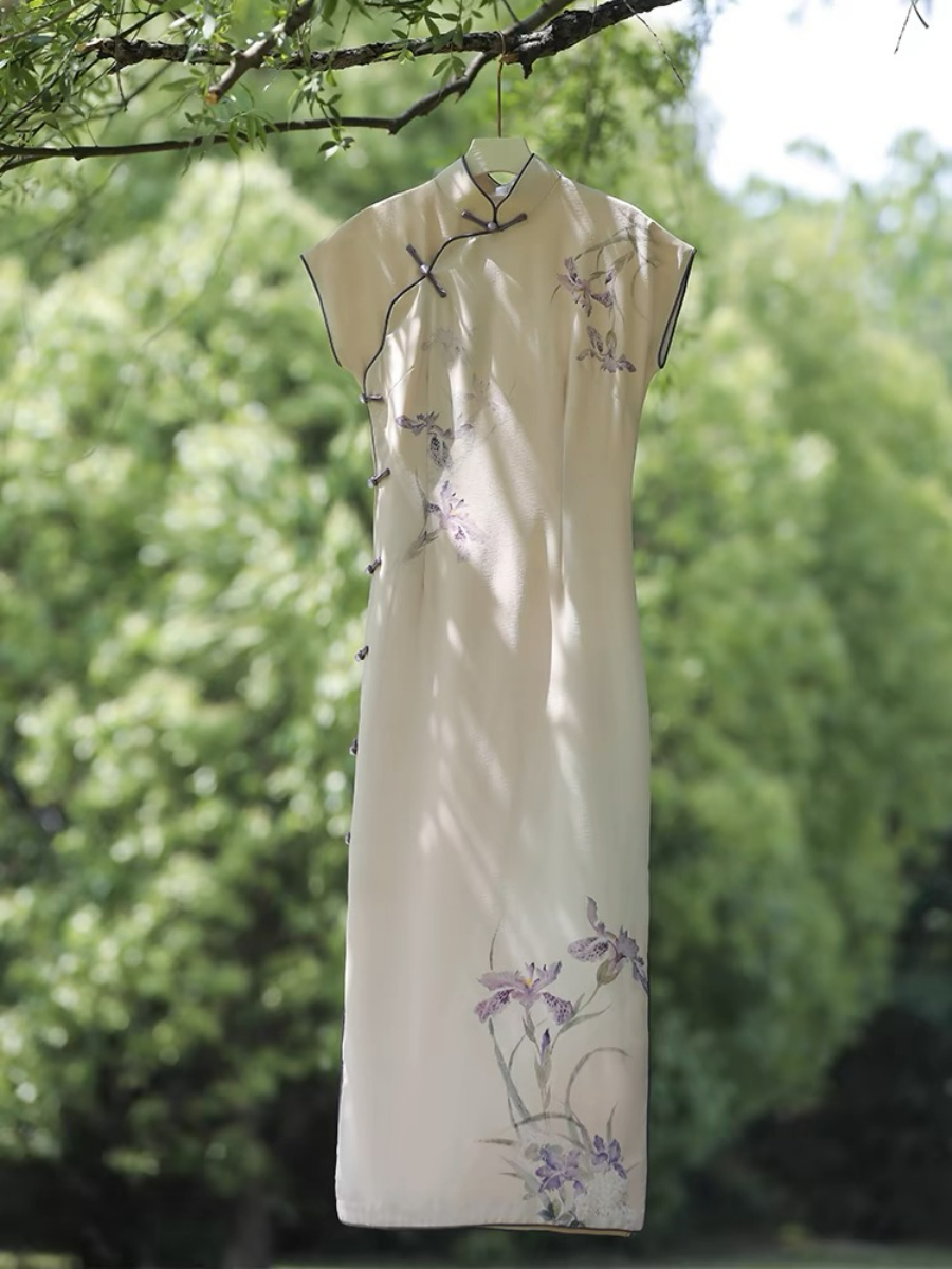 Featuring a full front placket with delicate frog button detailing, this cheongsam allows for effortless dressing while retaining the charm of classic design. Its flattering cut gently hugs the figure, creating a slimming silhouette that remains comfortable enough for daily wear. The refined collar and thoughtful tailoring highlight the neckline and waist. Ideal for women who appreciate subtle elegance, vintage charm and modern-day functionality.