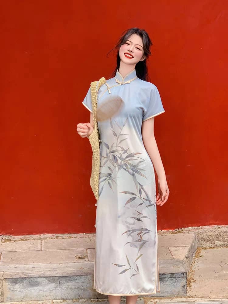 Ya Huang Full Placket Pankou Gradient Cheongsam